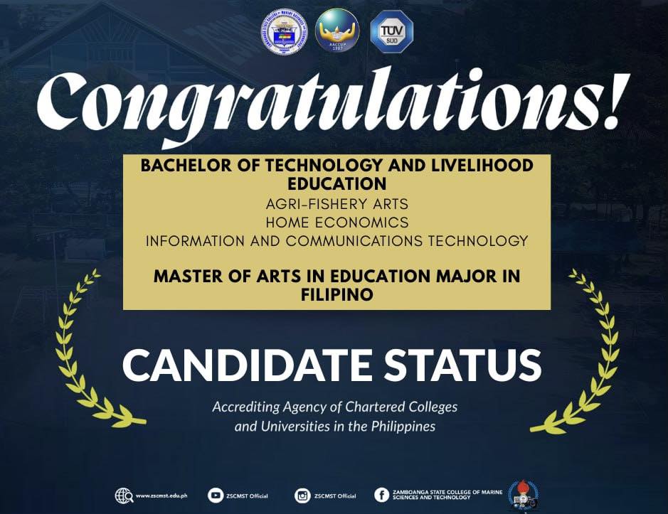 Meanwhile, the Bachelor of Technology and Livelihood Education (BTLEd) majors in Agri-Fishery Arts (AFA), Home Economics (HE), and Information and Communications Technology (ICT), along with the Master of Arts in Education major in Filipino (MAEd Fil), have each been granted Candidate Status—a significant step toward full accreditation and a testament to their strong foundations.